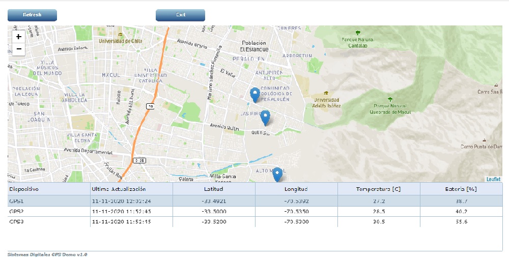 ![]() Despliegue de posición y estado de sensores equipos S050B. Transmisores de radiofrecuencia LoRa. | |